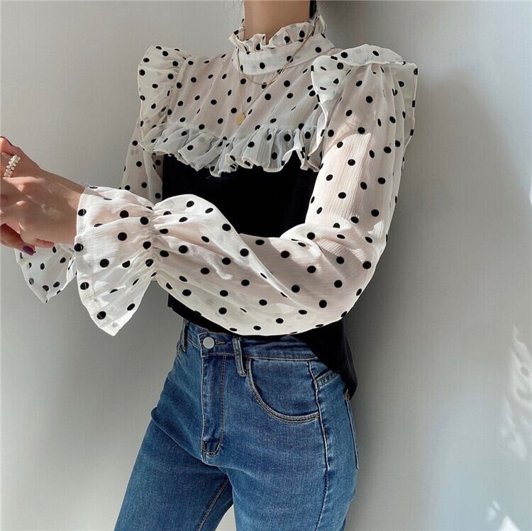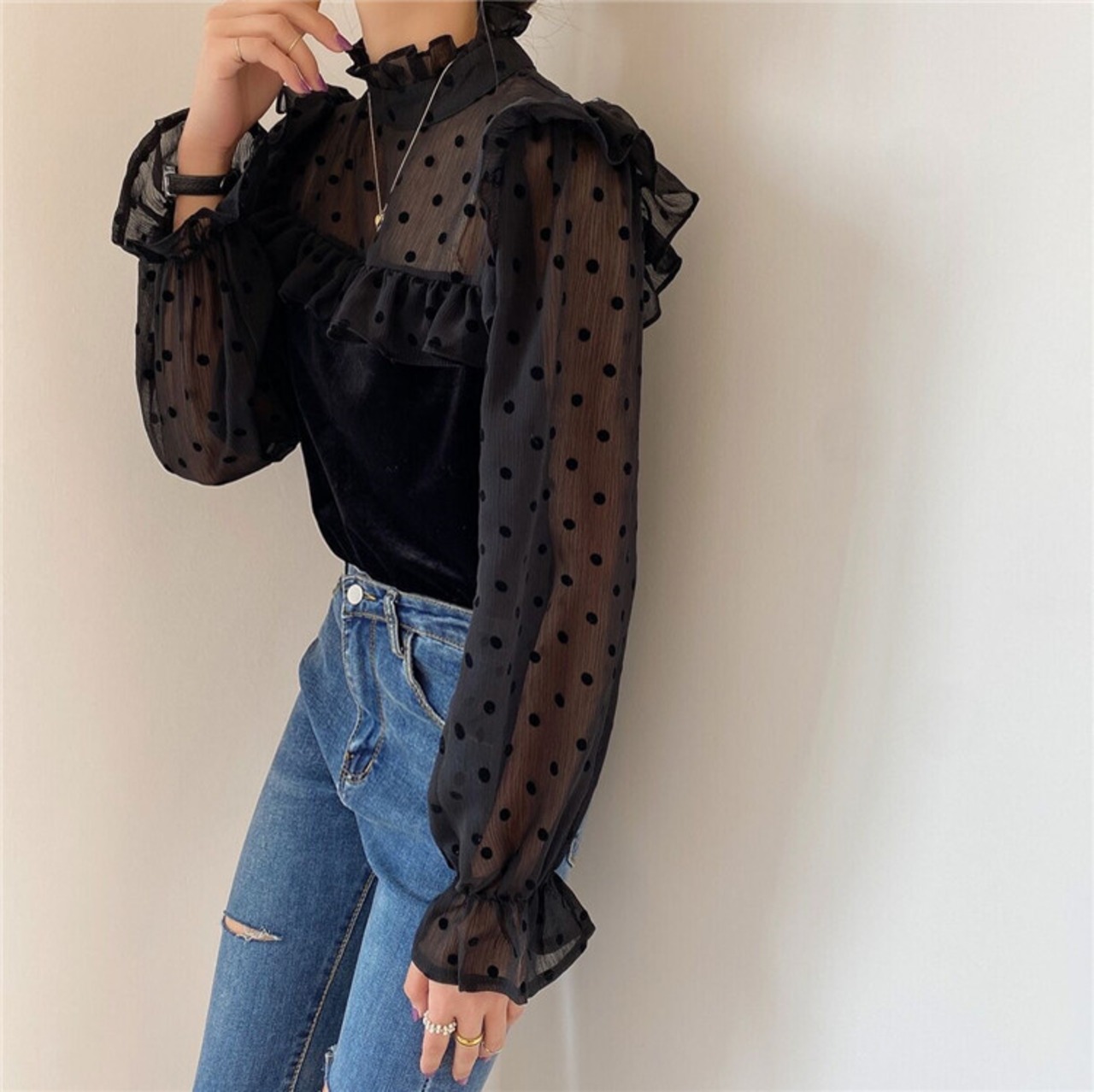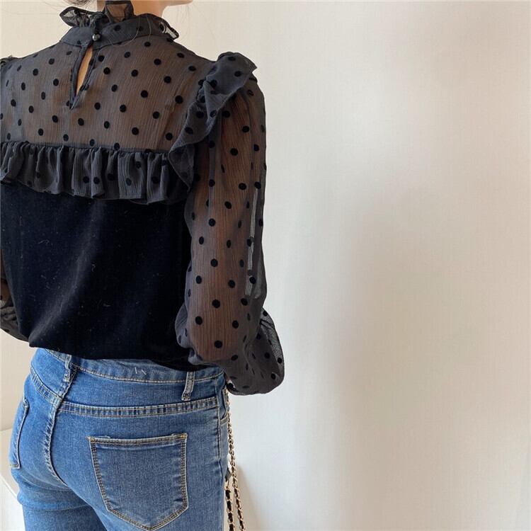 ベルベット トップス ドット 薄い セクシー sweet系 エレガント大人気