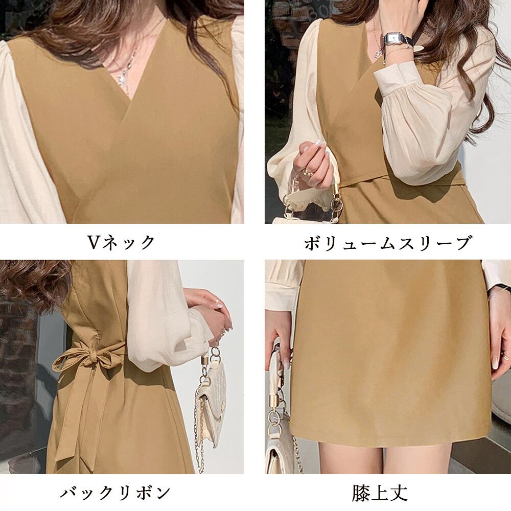 春 重ね着風ワンピ オフィスカジュアル ワンピース 韓国