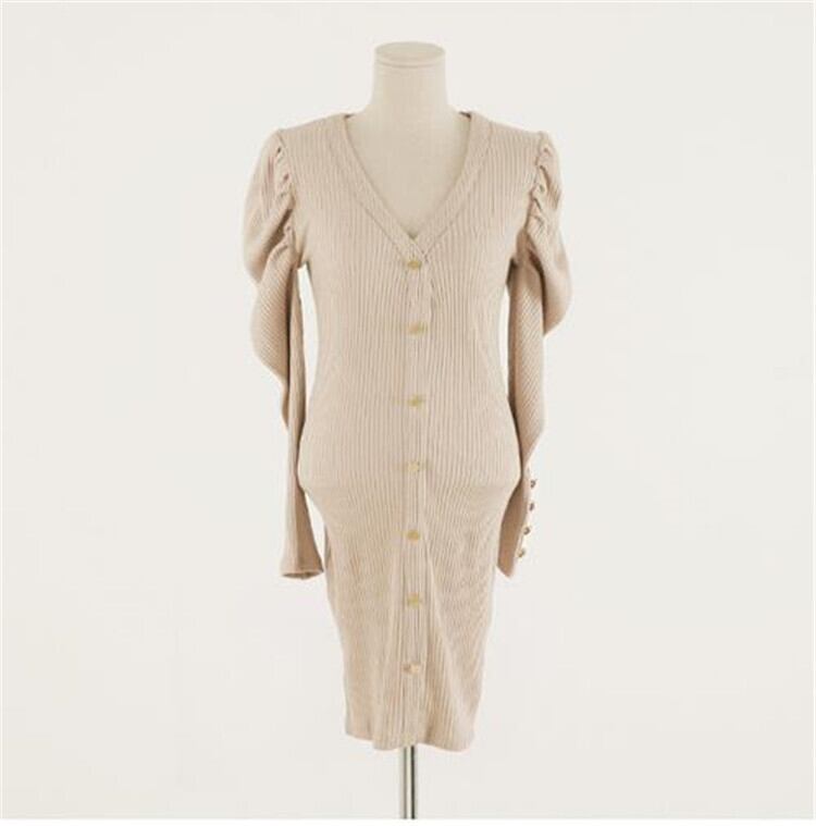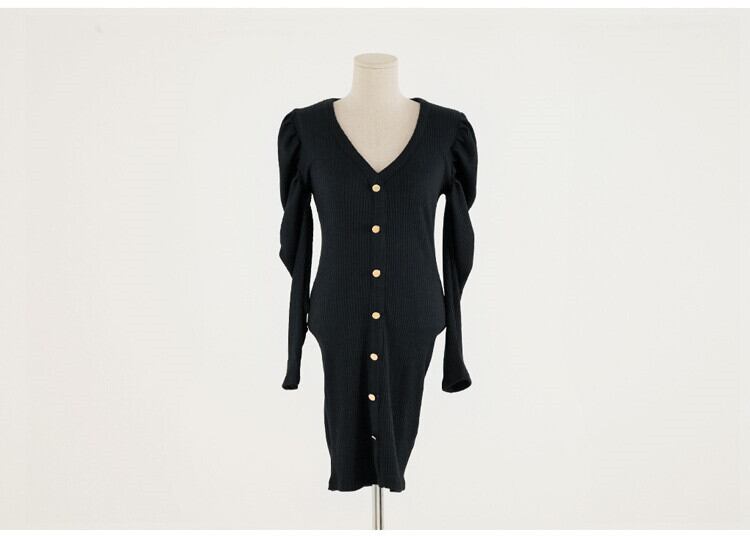 韓国版 ニット ワンピース Vネック ブラックドレス スリムフィット タイトスカート