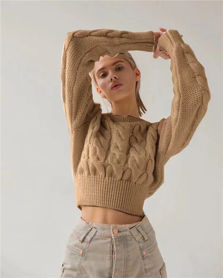 短いスタイル レトロ ラウンドネック ニットトップ 快適である セーター 秋と冬 麻の花