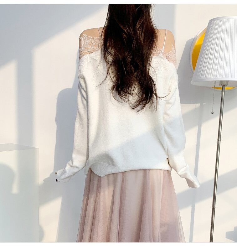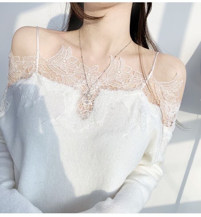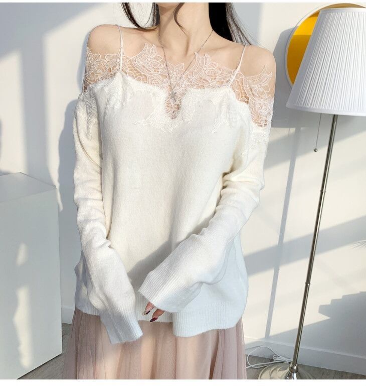 オフショルダー レース ニットトップス ジェントルスタイル ヤングスタイル