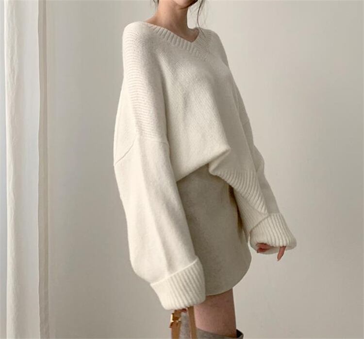 2点セット 気質 エレガント ハイウエスト Vネック ニットトップス 柔らかい ミニスカート