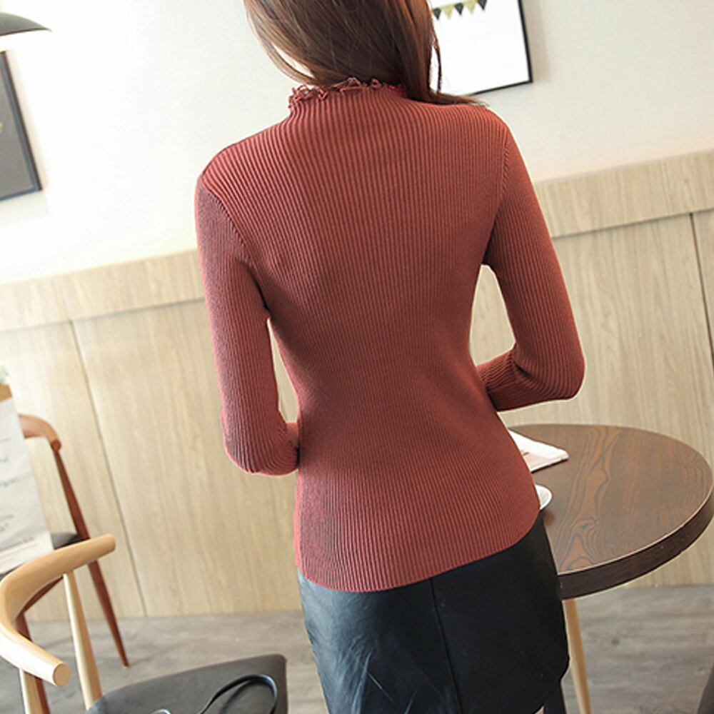 可愛くリブでスマートハイネックニットソー