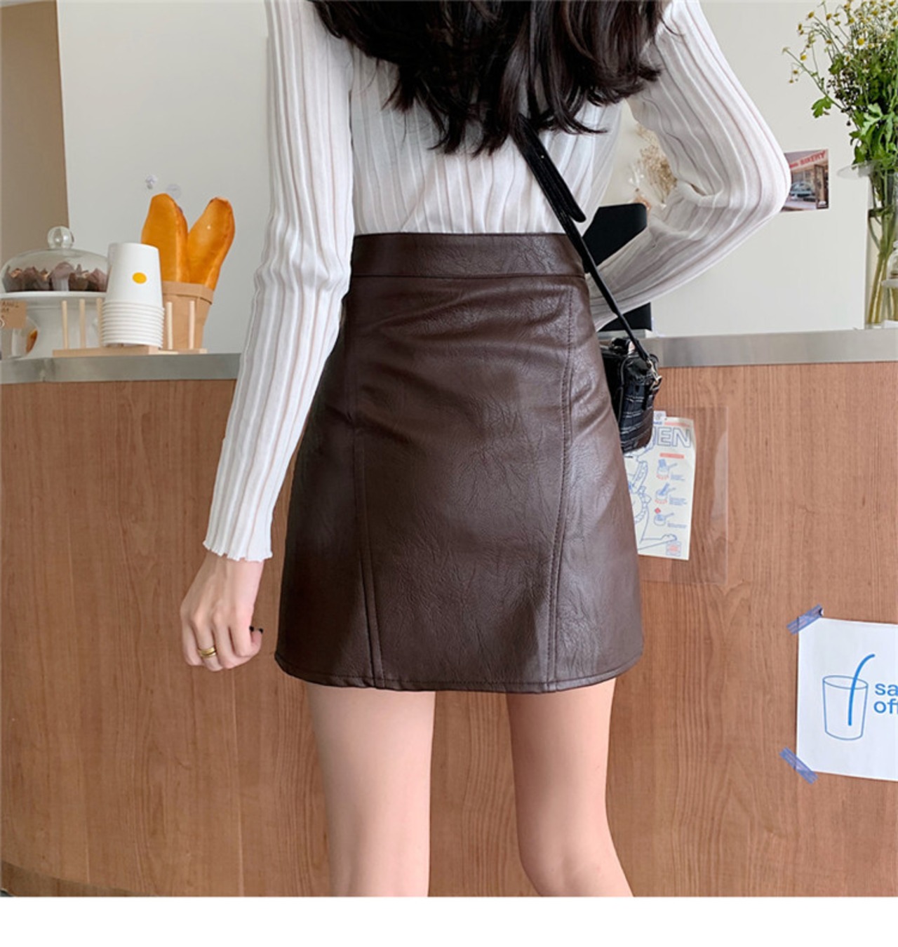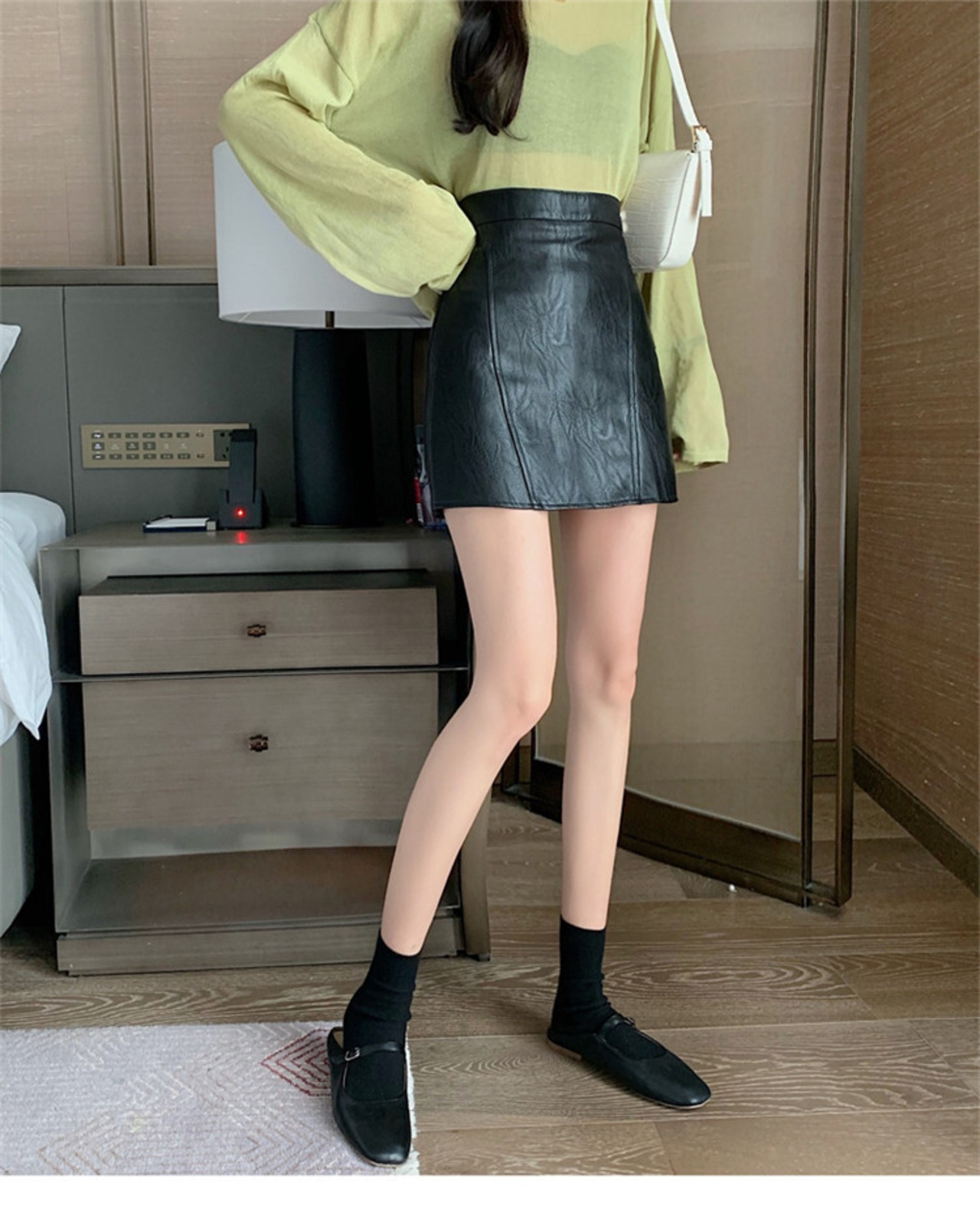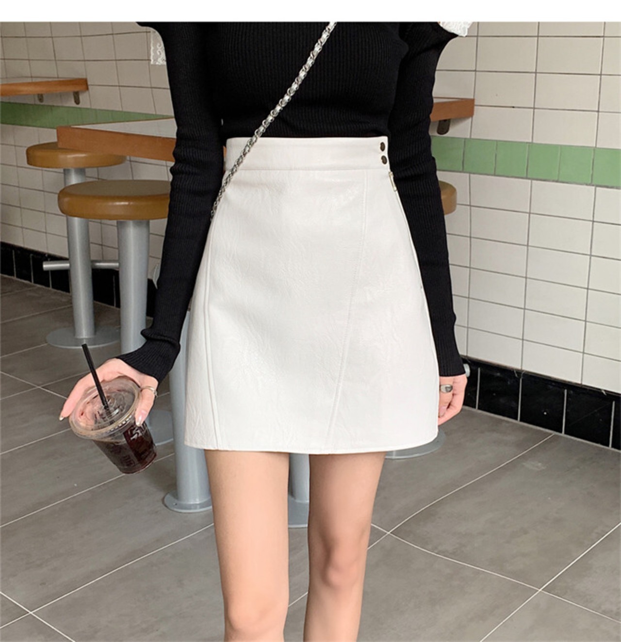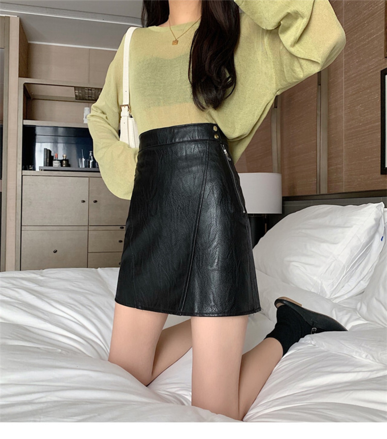 タイトスカート 女性 黒 ハイウエスト Aライン レザースカート 2021秋 冬 ミニスカート ジッパー